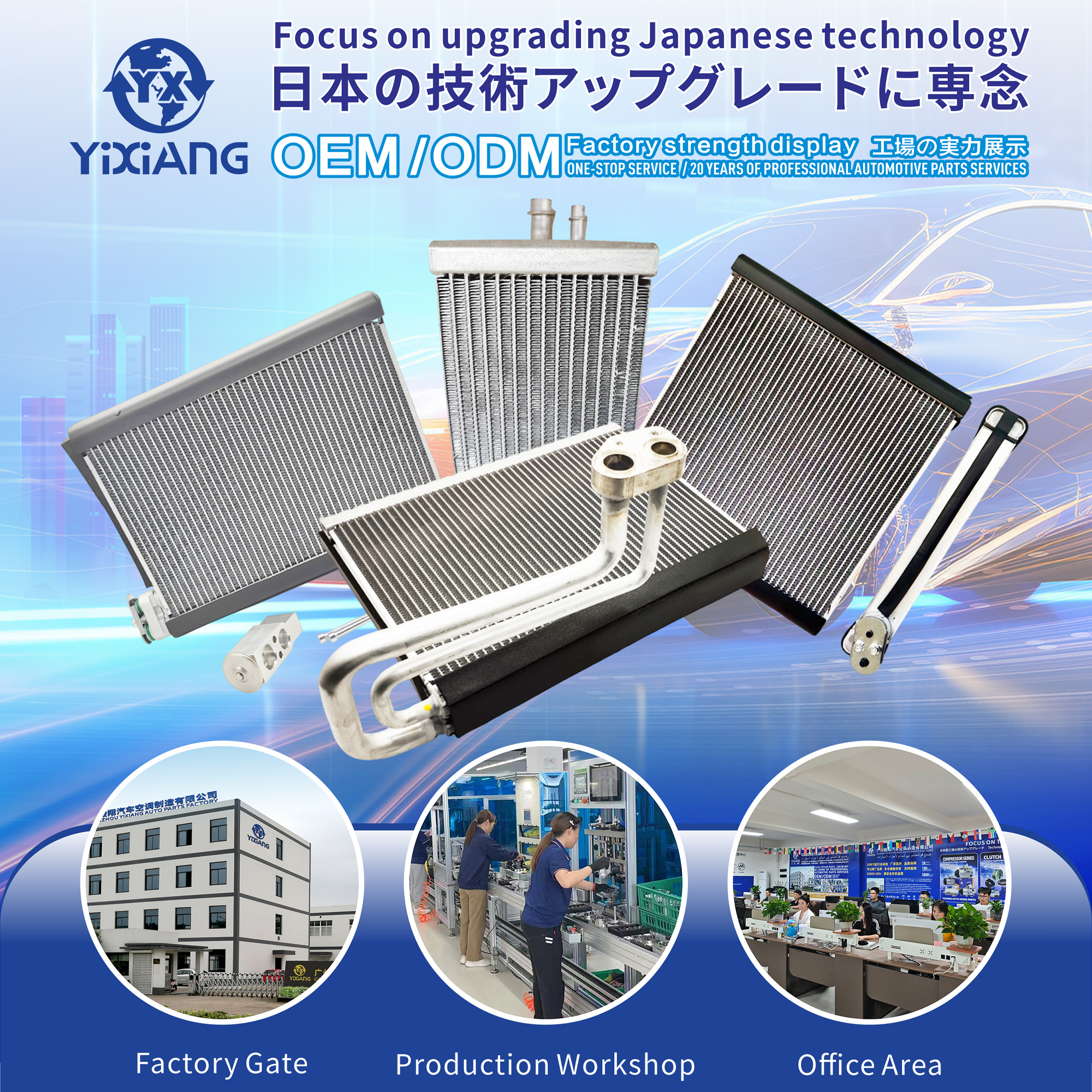 Yixiang is your one-stop automobile ac system parts source factory, focusing on Japanese technology upgrading, supplying ac parts such as compressors, clutches, control valves, with competitive prices, fast global delivery, service and technical support.